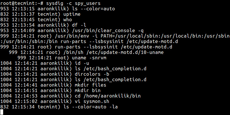 Nhưng nếu bạn muốn xem các câu lệnh mà những người dùng khác đang thực thi thông qua Terminal hoặc SSH, bạn có thể sử dụng Công cụ Sysdig.