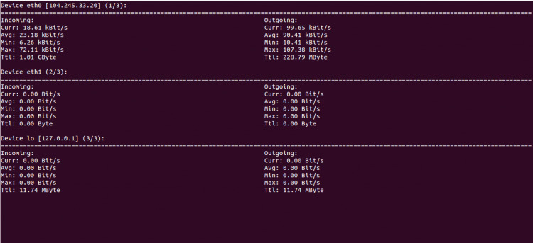 Nếu bạn là một quản trị viên hệ thống mạng và bạn cần giám sát việc sử dụng băng thông trong mạng của bạn hàng ngày. Trong trường hợp này, nload sẽ giúp bạn làm việc đó dễ dàng hơn, nload là một công cụ dòng lệnh có thể dùng để giám sát lưu lượng mạng và việc sử dụng băng thông trong thời gian thực. Nó sẽ thể hiện lưu lượng đi và đến qua hai biểu đồ và cũng cung cấp những thông tin đi kèm như cường độ sử dụng mạng nhỏ nhất/lớn nhất và tổng dữ liệu đã truyền tải