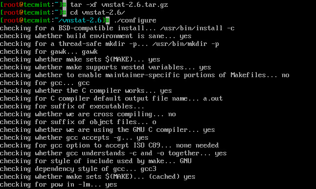 sudo apt-get install build-essential gd gd-devel libsqlite3-dev tar -xvf vnstat-2.6.tar.gz cd vnstat-2.6/ sudo ./configure --prefix=/usr --sysconfdir=/etc sudo make sudo make install