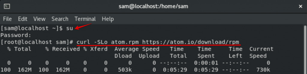 curl -SLo atom.rpm https://atom.io/download/rpm