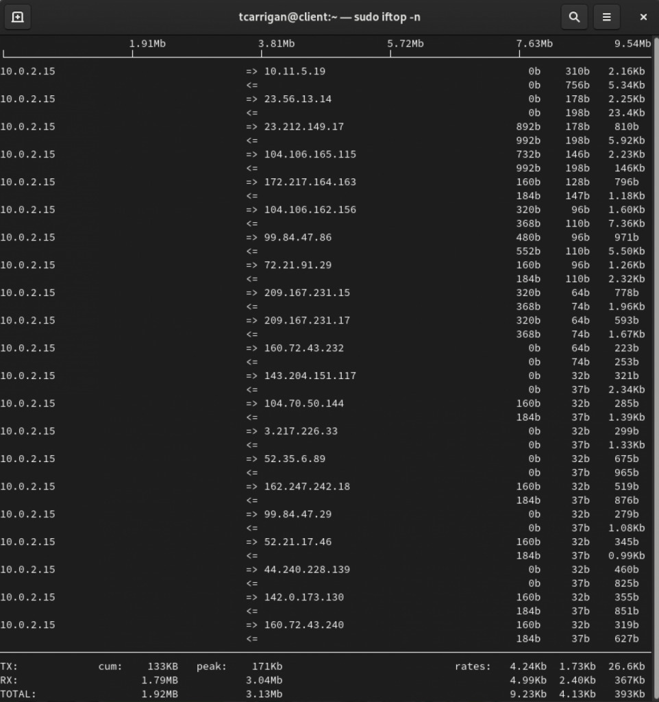 [cloudzone@client ~] $ sudo iftop -n