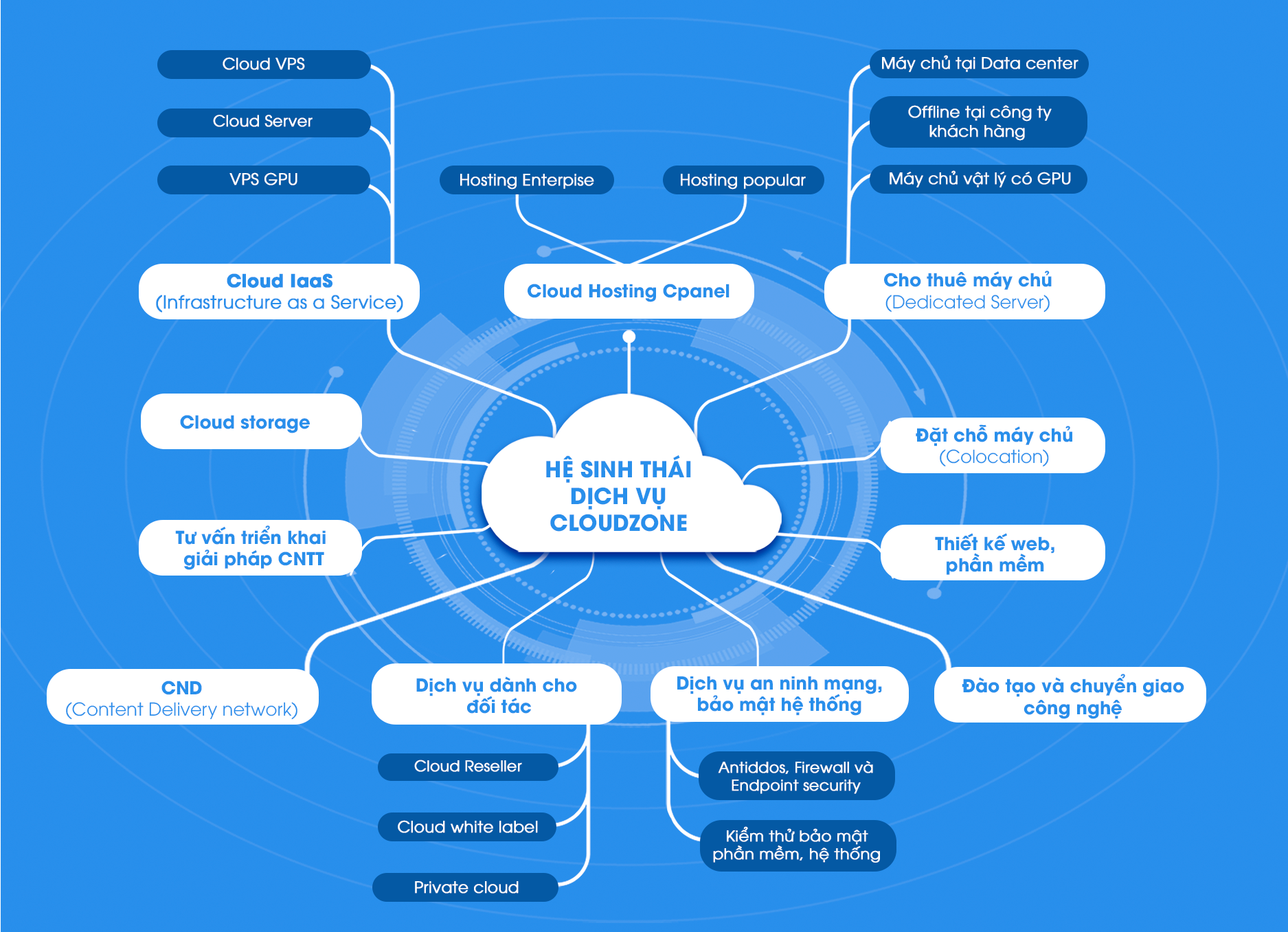 Cloudzone cung cấp các dịch vụ CNTT trên nền tảng điện toán đám mây, đa dạng các dịch vụ như: Cloud Web, Máy chủ ảo, máy chủ vật lý (Dedicated Server), Cloud Hosting,…