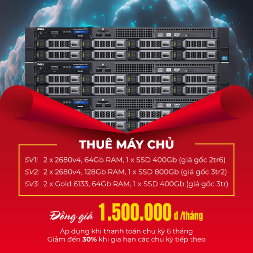 Số lượng chỉ 15 máy cấu hình từ chip v4 đến chip gold, ai nhanh tay sẽ được chọn cấu hình tốt nhất:hjghj– SV1: 2 x 2680v4, 64Gb RAM, 1 x SSD 400GbGiá sale 1.500.000 đ/ tháng (giá gốc 2.600.000 đ/ tháng)Số lượng khuyến mãi: 5 máy chủhjghj– SV2: 2 x 2680v4, 128Gb RAM, 1 x SSD 800GbGiá sale 1.500.000 đ/ tháng (giá gốc 3.200.000 đ/ tháng)Số lượng khuyến mãi: 5 máy chủhjghj– SV3: 2 x Gold 6133, 64Gb RAM, 1 x SSD 400GbGiá sale 1.500.000 đ/ tháng (giá gốc 3.000.000 đ/ tháng)Số lượng khuyến mãi: 5 máy chủĐăng ký ngay tại hoặc liên hệ trực tiếp: https://portal.cloudzone.vn/san-pham/dich-vu-server/hjghj