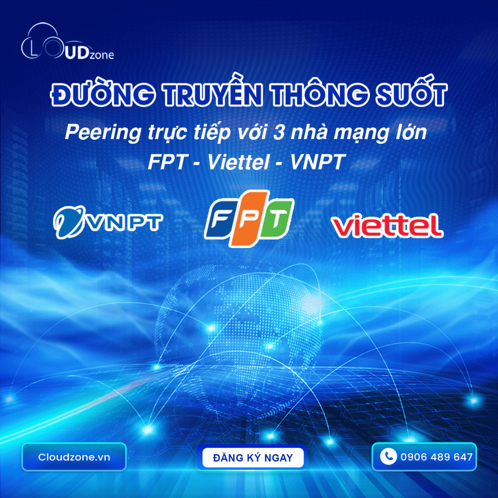 Peering trực tiếp FPT-Viettel-VNPT: Trong khi nhiều nhà cung cấp chỉ có một hoặc hai đường kết nối, Cloudzone thực hiện peering trực tiếp với cả ba “ông lớn” viễn thông Việt Nam: FPT, VNPT, Viettel. Mang đến tốc độ truy cập nhanh nhất và ổn định nhất