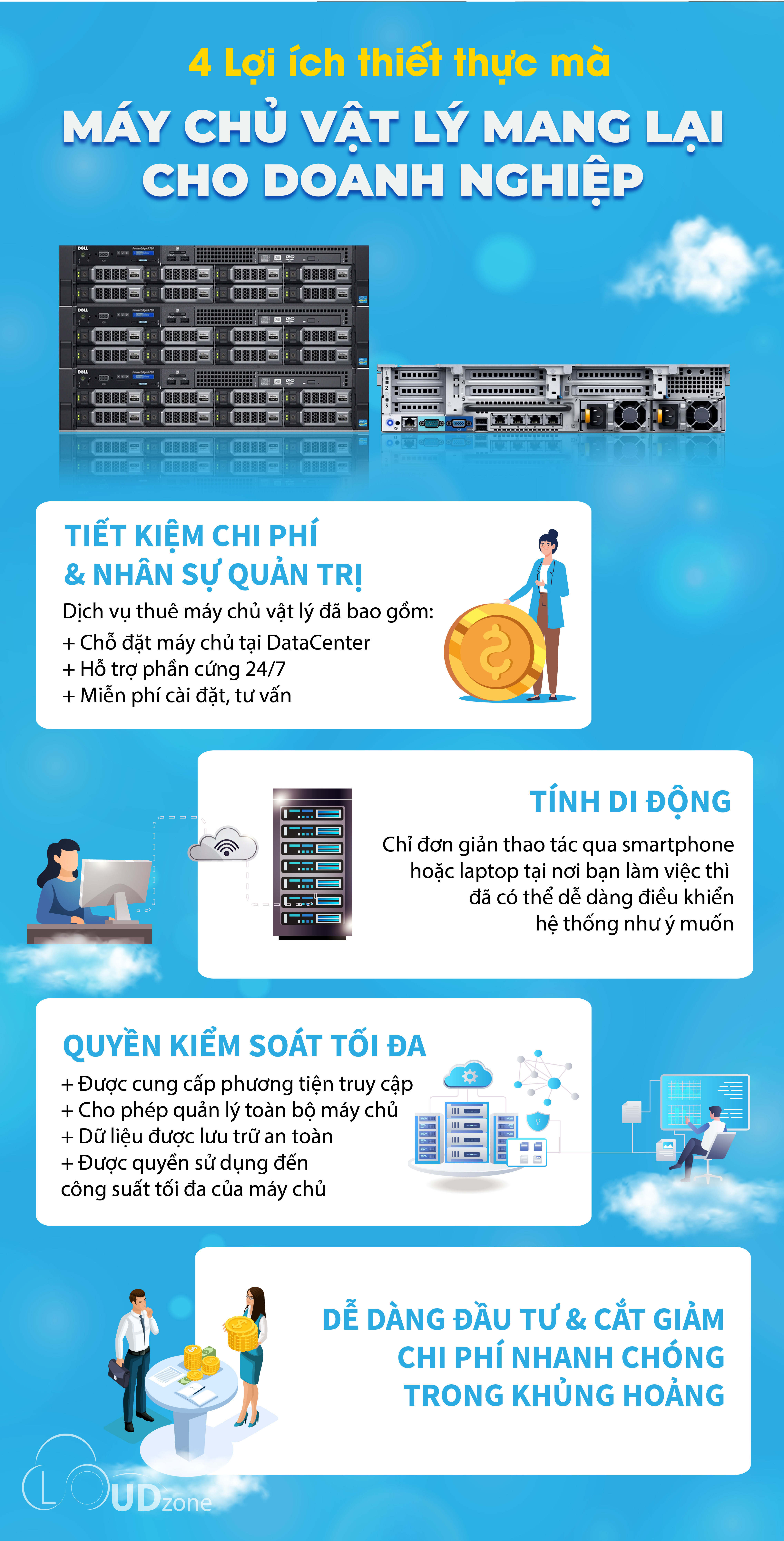 Máy chủ vật lý mang lại rất nhiều lợi ích thiết thực cho doanh nghiệp, từ việc tối ưu hóa chi phí, tính linh hoạt trong quản lý cho đến quyền kiểm soát tối đa và khả năng tính toán đầu tư hiệu quả. Với những doanh nghiệp đang tìm kiếm giải pháp công nghệ thông tin đáng tin cậy và tiết kiệm chi phí, dịch vụ thuê máy chủ vật lý của Cloudzone.vn là lựa chọn hoàn hảo.