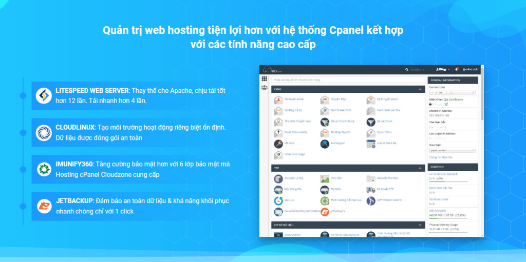 | Hosting Cpanel kết hợp với các tính năng cao cấp |