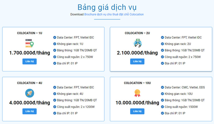 - Chi Phí Hợp Lý: Giá thuê chỗ đặt máy chủ chỉ từ 1.700.000đ/tháng, phù hợp với nhiều doanh nghiệp.