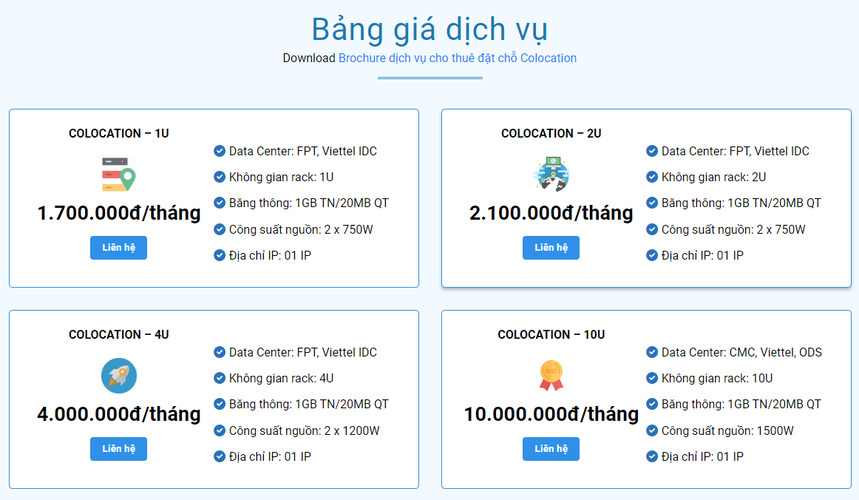Xem bảng giá thuê chỗ đặt máy chủ tại đây: https://cloudzone.vn/server-colocation/